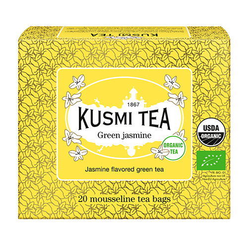 Tea Kusmi Green Jasmine Organic, Jasmine-Scented Green Tea, 20 Muslin Tea Bags, Paris, France, 40G