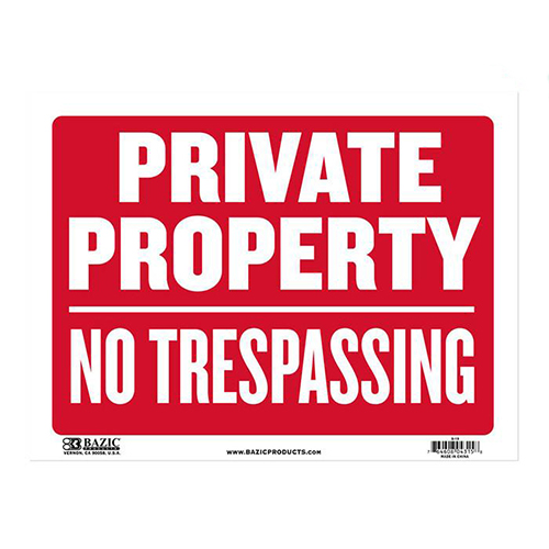 Sign Private Property No Trespassing 30x23cm
